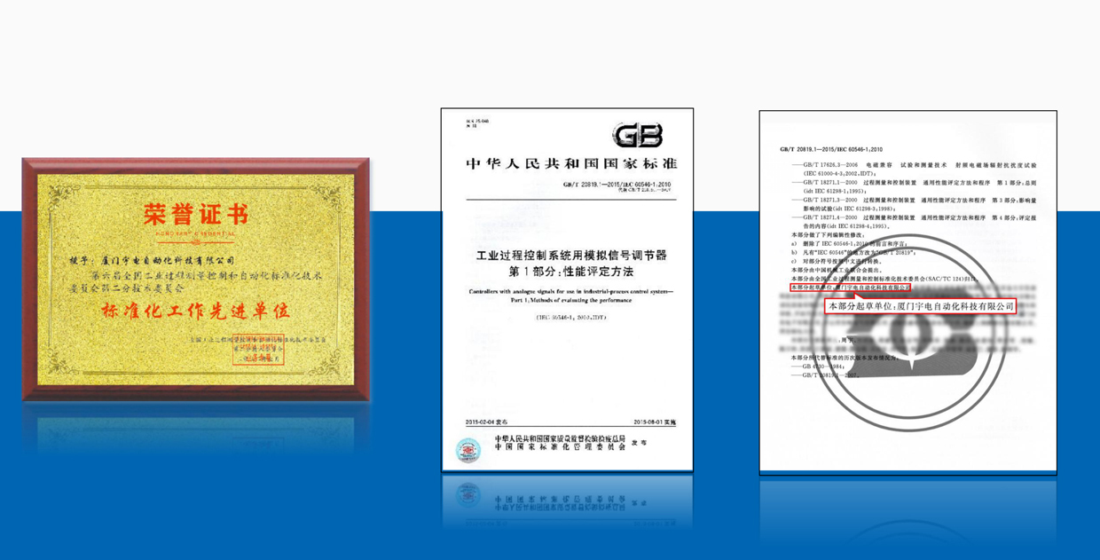 宇電積極參與國家標準制定工作,主持起草了《GB/T 20819.1-2015 工業(yè)過程控制系統(tǒng)模擬信號調(diào)節(jié)器》標準,該標準為溫控器調(diào)節(jié)器最主要的國家標準;并參與《溫度測量設(shè)備電子數(shù)據(jù)交換用屬性列表》等50多項國家標準制定。