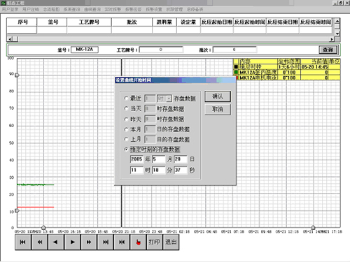 生產(chǎn)過程及物料狀態(tài)可完全由計算機生成實時曲線和報表進行監(jiān)測和控制,所有相關(guān)歷史數(shù)據(jù)都用ACCESS數(shù)據(jù)庫進行保存,有完善的歷史報表、曲線以便日后查詢。